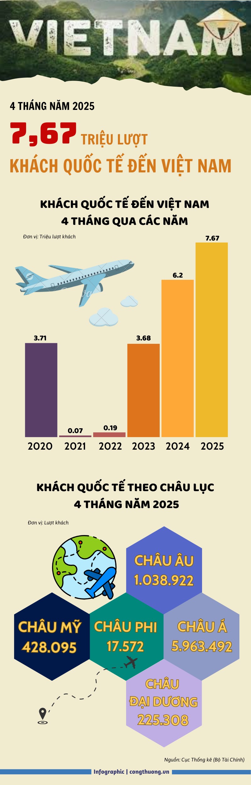 Tính chung 4 tháng đầu năm nay, khách quốc tế đến Việt Nam đạt 7,67 triệu lượt người, tăng 23,8% so với cùng kỳ năm 2025.