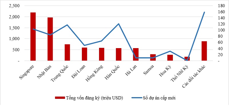 Các nhà đầu tư đến từ châu Á, các đối tác đầu tư truyền thống, như Singapore, Nhật Bản, Trung Quốc, Đài Loan, Hồng Kông, Hàn Quốc... Riêng 6 đối tác này đã chiếm tới 75,1% tổng vốn đầu tư của cả nước trong 4 tháng.