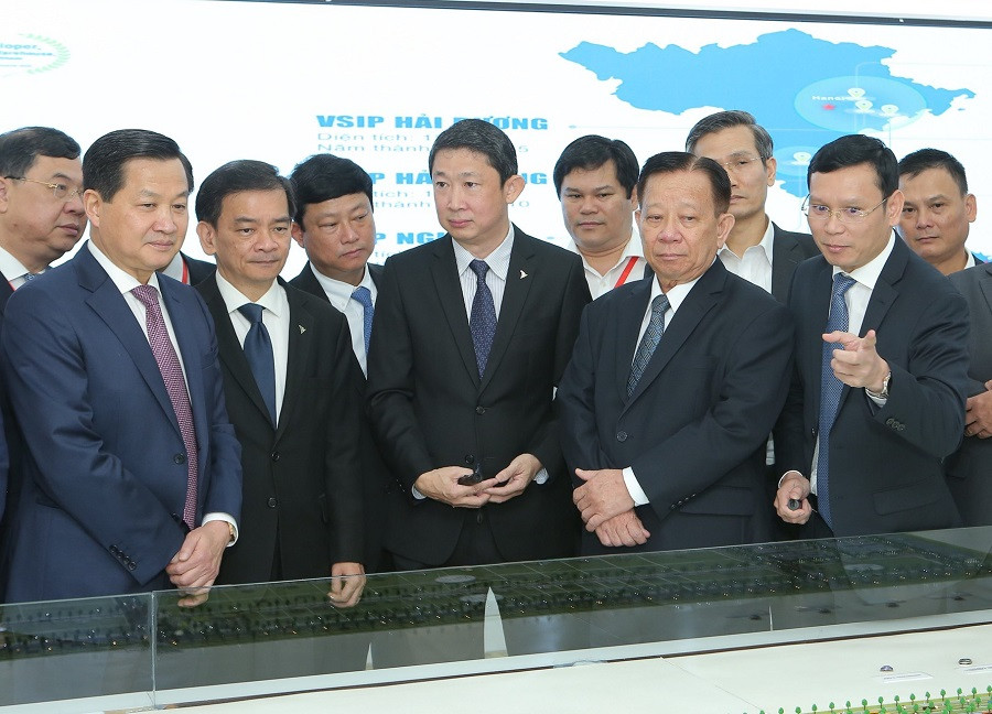 Theo đó, liên doanh Khu công nghiệp Việt Nam - Singapore (VSIP Group - gồm Tổng công ty Becamex IDC và Tập đoàn Sembcorp Development LTD, Singapore) và lãnh đạo các tỉnh 9 tỉnh Bình Phước, Tây Ninh, Bình Thuận, Khánh Hòa, Thừa Thiên - Huế, Hà Tĩnh, Thanh Hóa, Thái Bình và Nam Định đã ký kết biên bản ghi nhớ để nghiên cứu triển khai các khu công nghiệp tại 9 địa phương này.