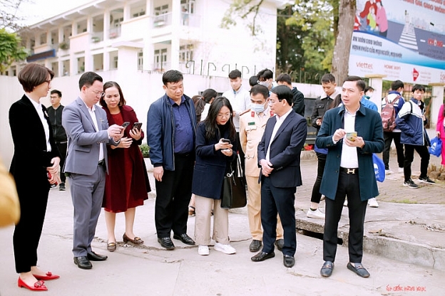 | Đại biểu, phụ huynh và học sinh tại lễ phát động Ứng dụng Kết nối thanh thiếu niên |