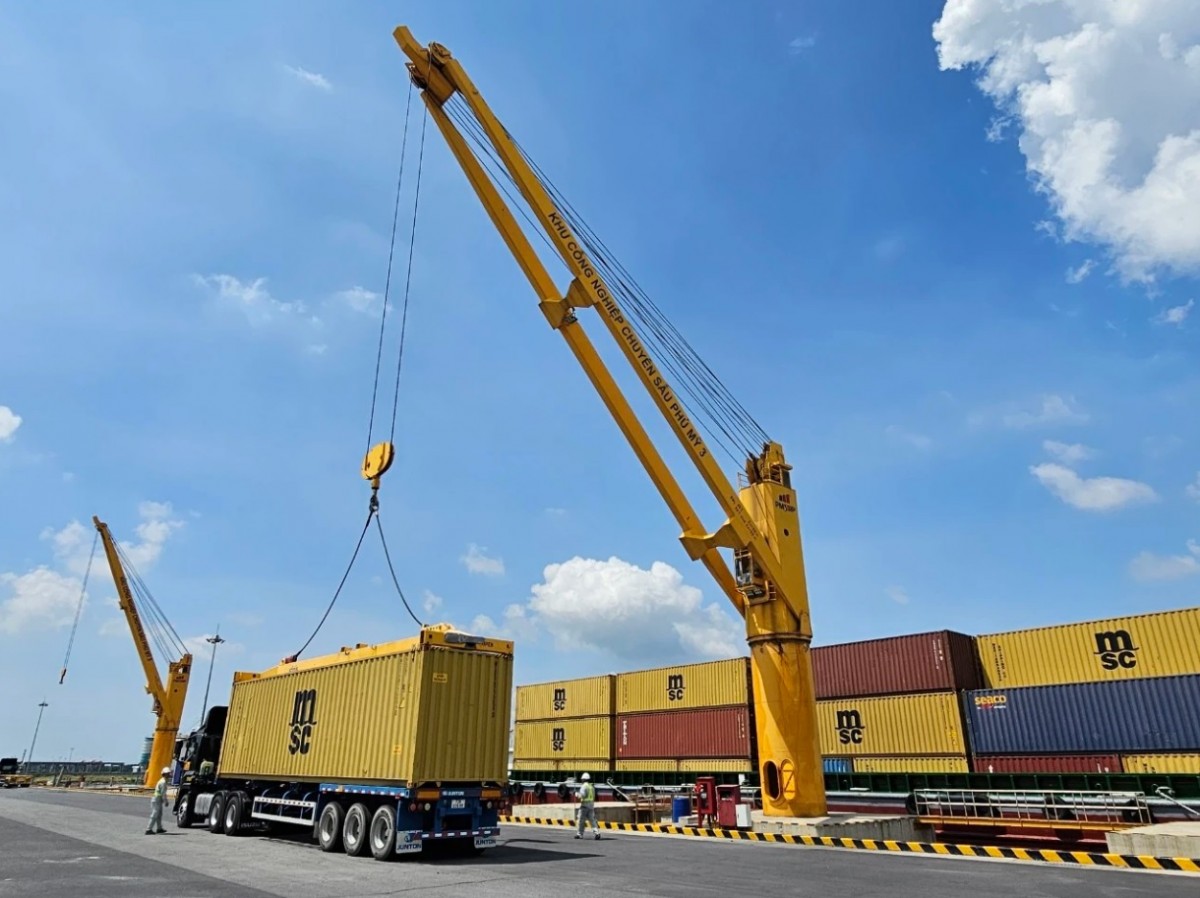 | Bốc xếp hàng hóa tại cảng ở Bà Rịa - Vũng Tàu. Ảnh: Nguyễn Ngọc |