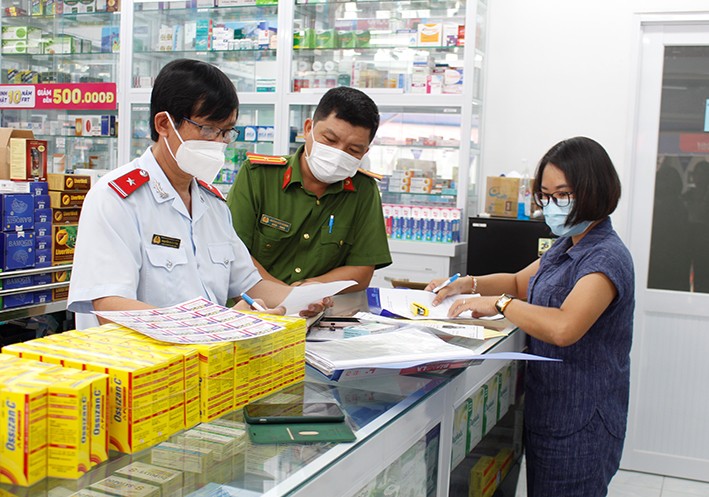 | Các lực lượng liên ngành của Bà Rịa - Vũng Tàu kiểm tra tại một cơ sở kinh doanh dược. Ảnh: Báo BR-VT |