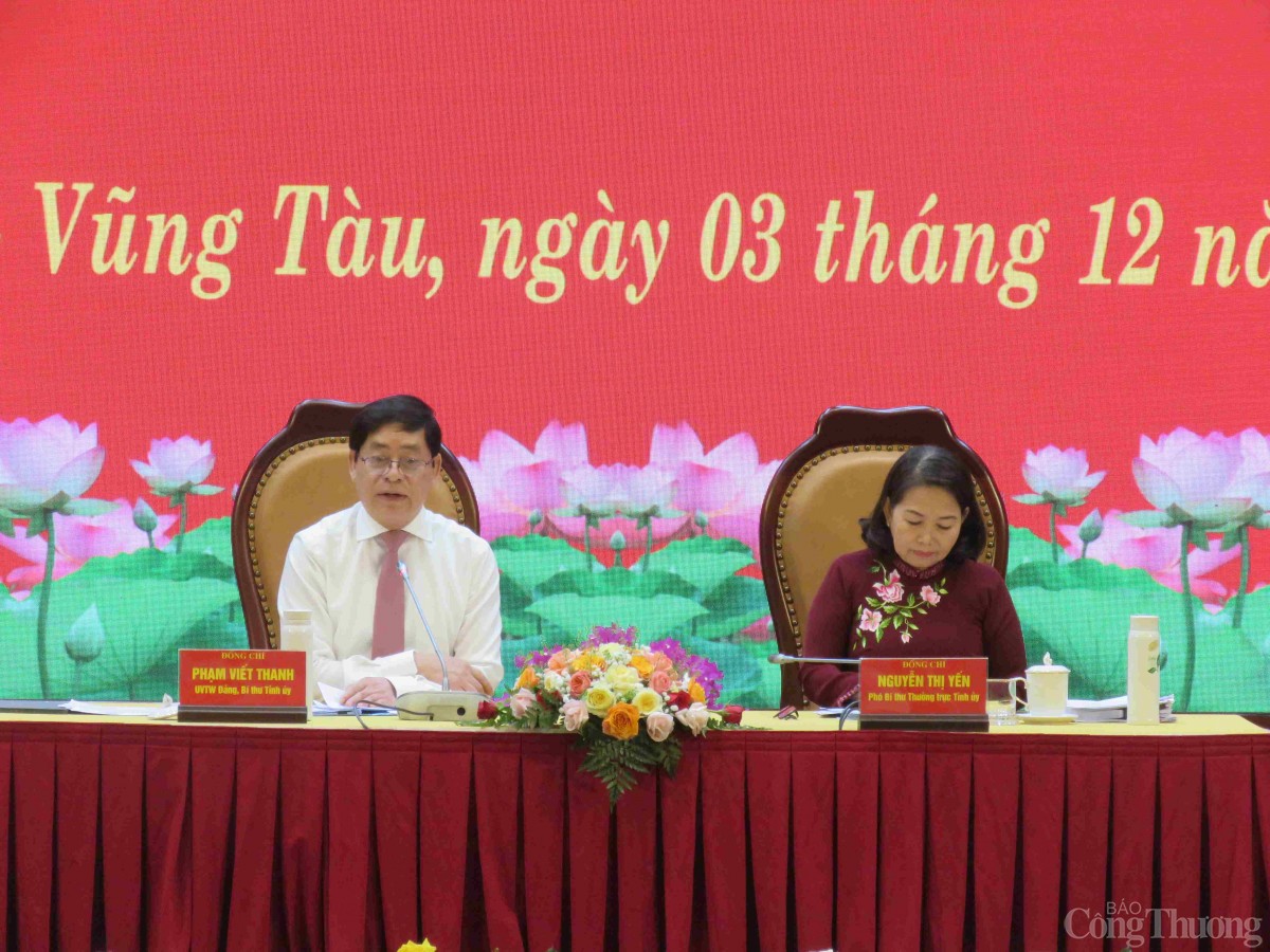 | Bí thư Tỉnh ủy Bà Rịa - Vũng Tàu Phạm Viết Thanh, Phó Bí thư Thường trực Tỉnh ủy Nguyễn Thị Yến chủ trì Hội nghị. Ảnh: Nguyễn Ngọc |
