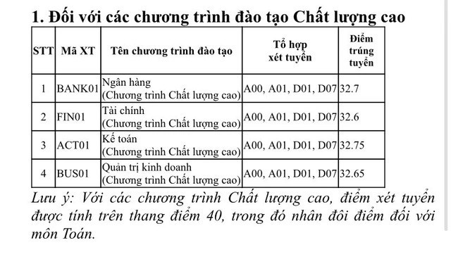 Học viện Ngân hàng là trường đại học đầu tiên ở phía Bắc công bố điểm chuẩn trúng tuyển đợt 1, cụ thể như sau: