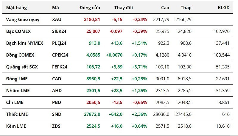 Quặng sắt tăng mạnh 3,71% lên mức 108,72 USD/tấn, trước một vài tín hiệu tích cực từ lĩnh vực sản xuất ô tô của Trung Quốc.