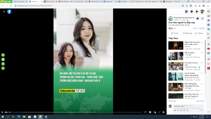 Ở một bài đăng khác vào ngày 16 giờ 45 phút ngày 6/7 với tiêu đề “Con nhà người ta đây này”, Theanh28 Entertainment đã sử dụng hình ảnh, nội dung từ Báo VNExpress và đóng logo Theanh28 News. Tương tự, logo của Báo VNExpress trên video được để chữ trắng, rất nhỏ và khó quan sát.