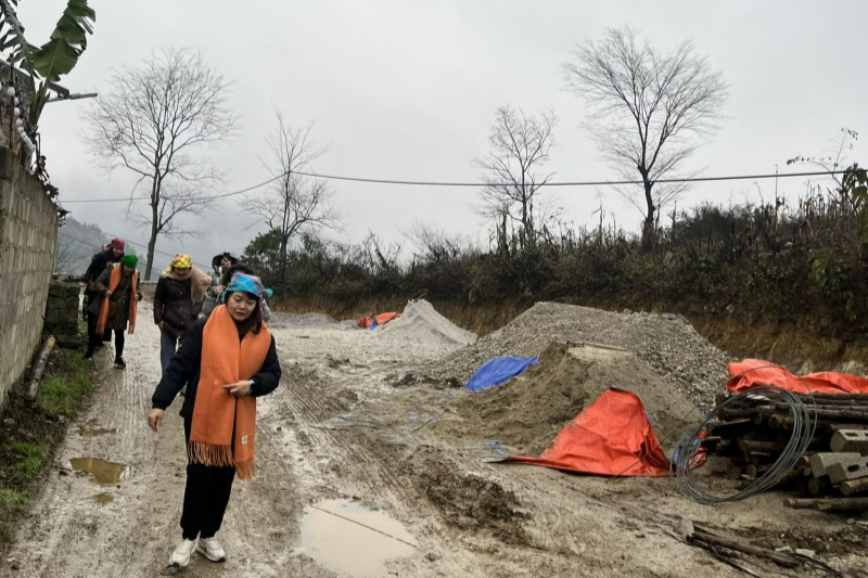 | Con đường lầy lội, bùn đất mà thầy cô đi qua để đến các điểm trường vùng cao |