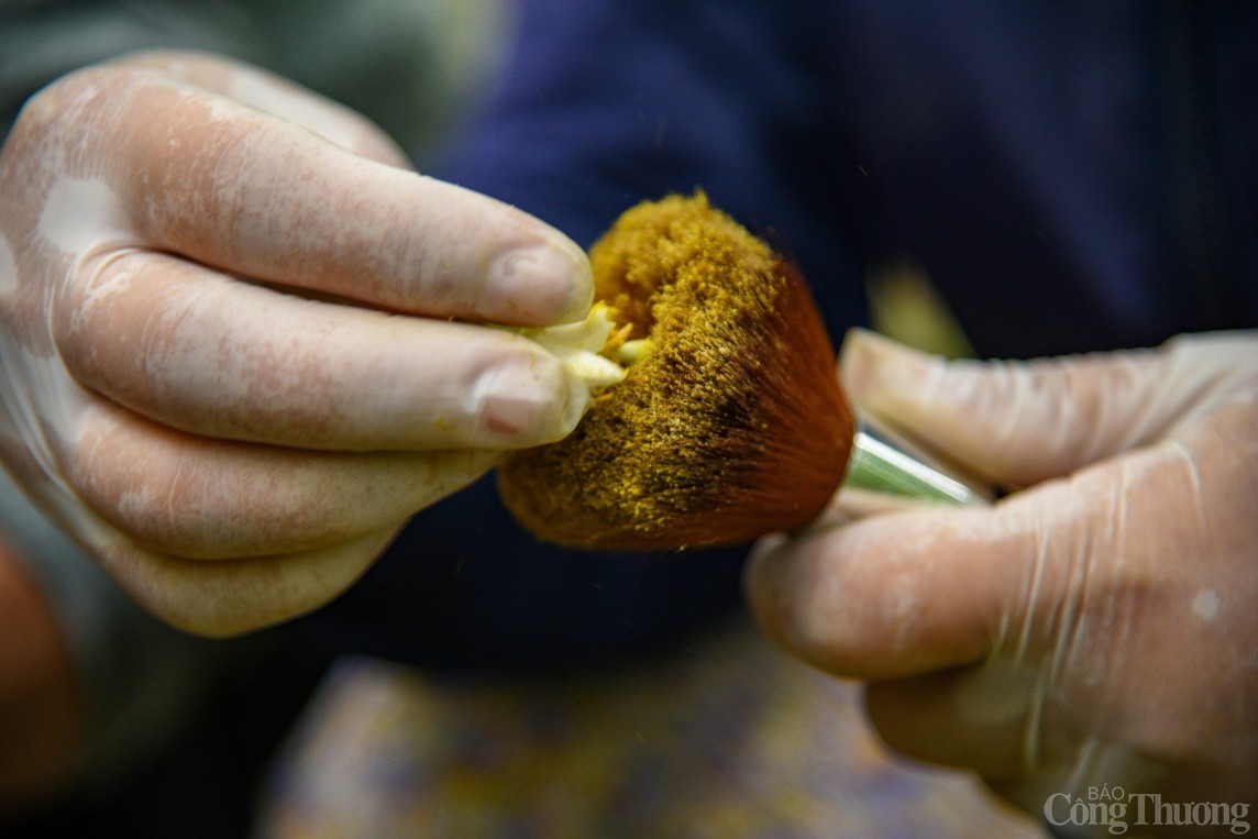 | Công cụ để thụ phấn là chiếc chổi dặm phấn trang điểm. Chổi có lông mềm, không làm hư hại cánh và nhụy hoa. |