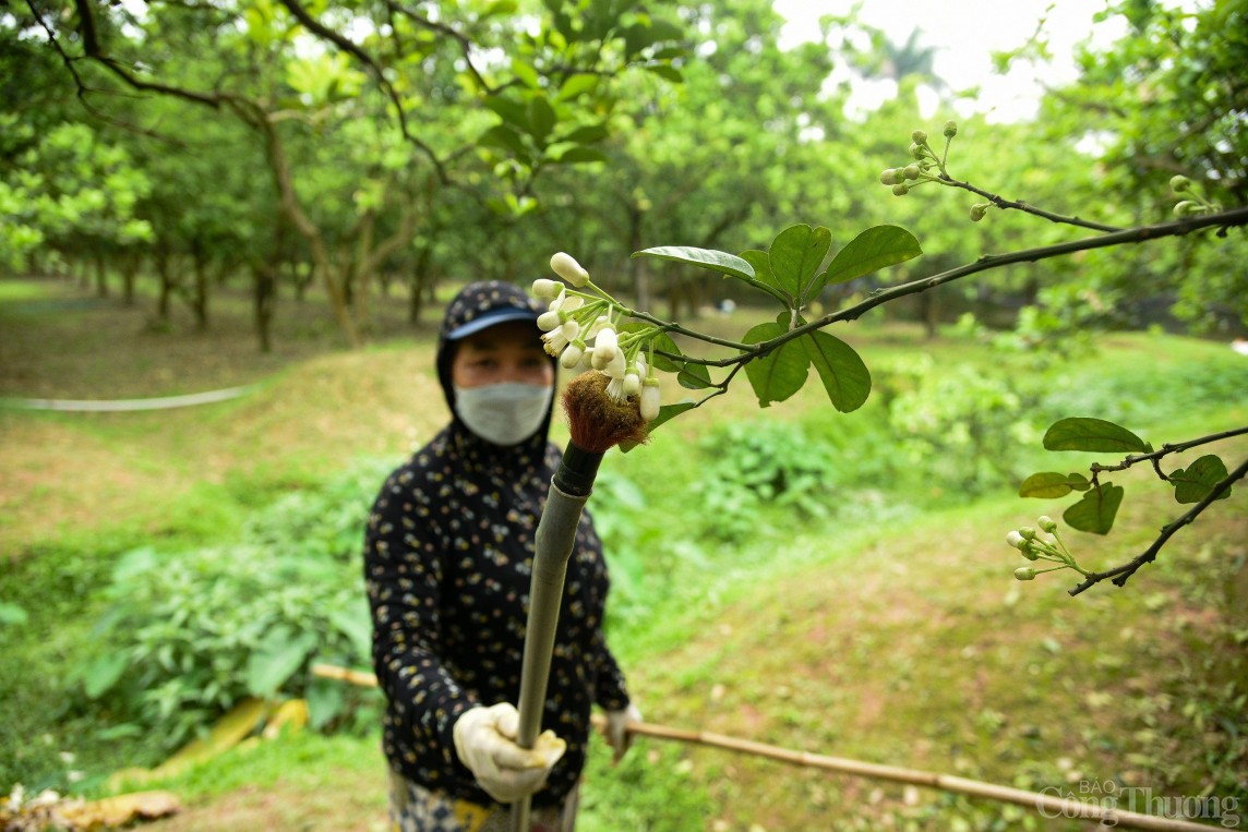 | Tương tự, anh Nguyễn Văn Chung, chủ vườn bưởi 1.000 gốc tại Phú Diễn (Bắc Từ Liêm, Hà Nội) cho biết, gia đình anh phải thuê 10 người để thực hiện công việc thụ phấn liên tục trong 1 tuần. |