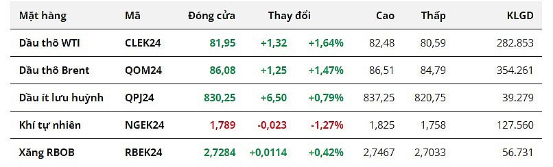 Kết thúc ngày giao dịch 25/3, thị trường dầu thô đón nhận lực mua tích cực trở lại trong bối cảnh rủi ro địa chính trị tại cả khu vực Trung Đông và xung đột giữa Nga – Ukraine đều diễn biến phức tạp. Ngoài ra, nỗ lực thắt chặt nguồn cung từ Nga cũng củng cố cho đà tăng của giá dầu ngay trong phiên. Chốt ngày, giá dầu WTI tăng 1,64% lên sát 82 USD/thùng. Dầu Brent kỳ hạn tháng 6 tăng 1,47% lên mức 86,08 USD/thùng.