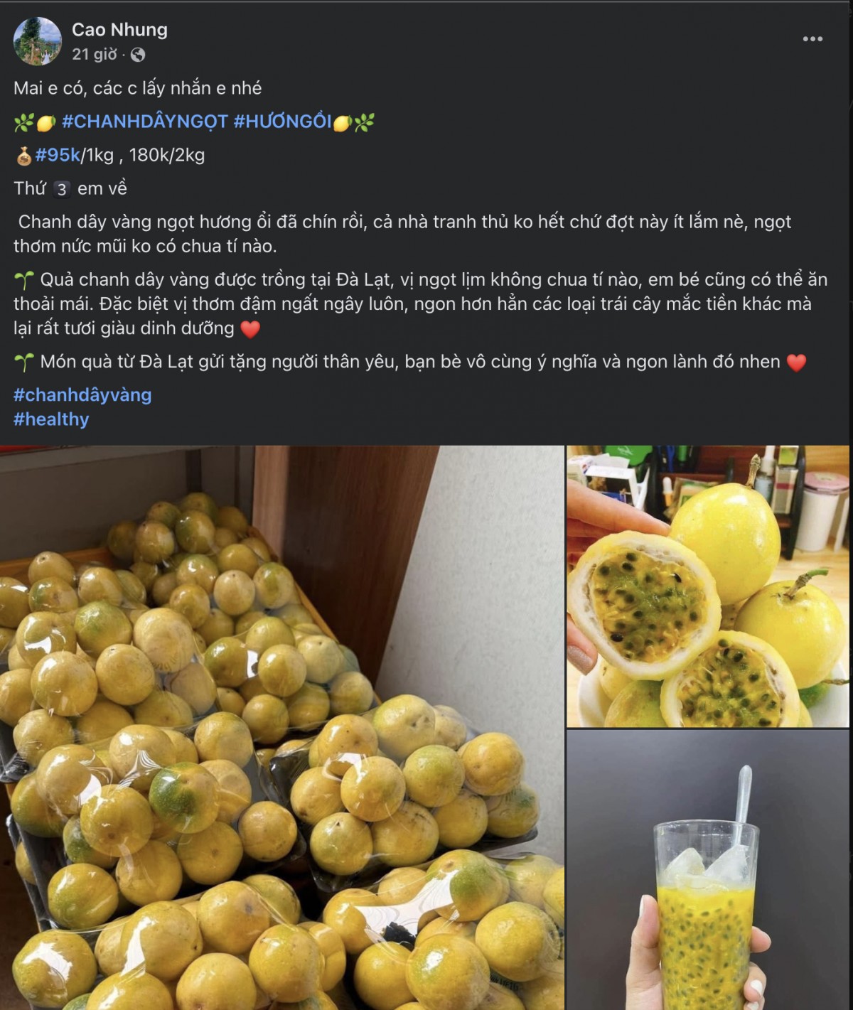 Không chỉ thị trường truyền thống, khảo sát trên các nền tảng mạng xã hội như TikTok, Zalo, Facebook cho thấy, mức giá bán lẻ chanh leo vàng đang ở mức cao “kỷ lục” cho một loại chanh leo, có nơi giao hàng tận nhà còn cộng thêm phí đóng gói lên đến 200.000 đồng/kg. Tuy nhiên, sức mua không hề giảm, thậm chí nhiều người tiêu dùng sẵn sàng “canh khung giờ” để chốt đơn.