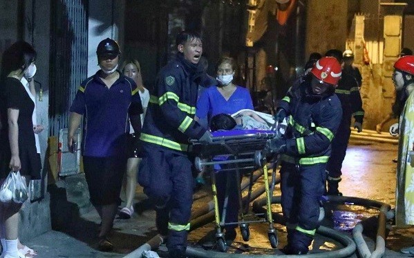 | Lực lượng chức năng cấp cứu nạn nhân vụ cháy chung cư mini Khương Hạ |