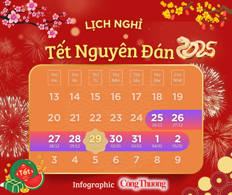 Chi tiết lịch nghỉ Tết Nguyên đán năm 2025