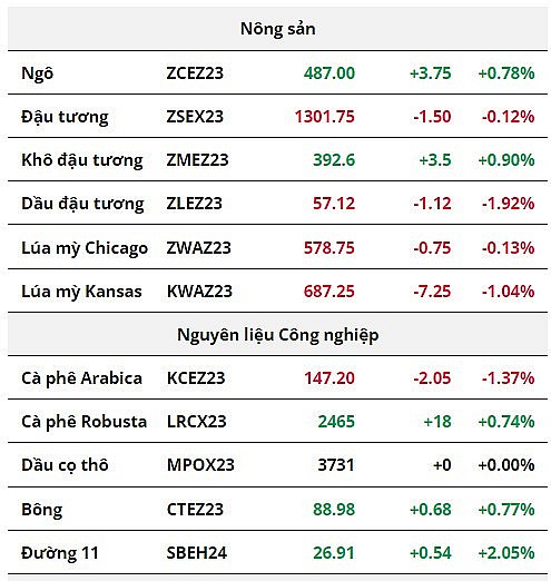 Các mặt hàng nhóm nông sản đang diễn biến trái chiều trong phiên tối. Giá ngô đã nhận được lực mua đáng kể do nguồn cung giảm và nhu cầu tốt tại EU. Trong báo cáo cung cầu hàng tháng, Ủy ban châu Âu EC đã hạ dự báo sản lượng ngô niên vụ 2023/24 của Liên minh châu Âu xuống còn 59,8 triệu tấn, từ mức 61,7 triệu tấn ước tính hồi tháng trước. Bên cạnh đó, cơ quan này cũng nâng triển vọng nhập khẩu ngô của khối lên mức 20 triệu tấn, từ mức 17 triệu tấn trong ước tính trước. Đây đang là những thông tin đang tác động “bullish” đến giá ngô vào hôm nay.