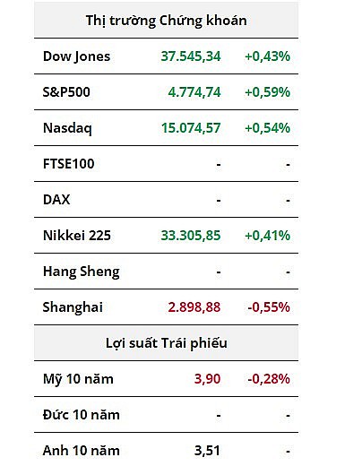 Cả ba chỉ số chứng khoán chính của Mỹ đều tăng nhẹ sau nghỉ lễ Giáng sinh, với S&P500 đạt mức cao nhất trong gần 2 năm và Nasdaq đạt mức cao kỷ lục. Đà tăng của nhóm cổ phiếu năng lượng đã thúc đẩy chỉ số chung của thị trường. Cổ phiếu năng lượng có mức tăng phần trăm cao nhất, được thúc đẩy nhờ giá dầu thô tăng khi xung đột ở Trung Đông làm gia tăng lo ngại về nguồn cung, trong khi sự lạc quan về việc cắt giảm lãi suất của Cục Dự trữ Liên bang Mỹ (FED) đã thúc đẩy kỳ vọng về nhu cầu.