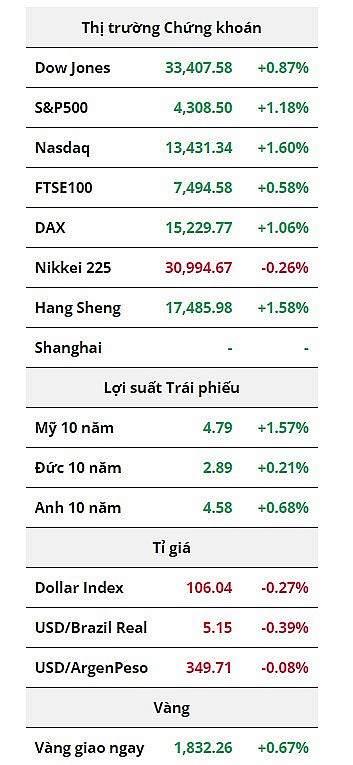 Chỉ số Nasdaq dẫn đầu đà phục hồi khi tăng 1,60%. Theo sau là chỉ số S&P500 với mức tăng 1,18%. Trong khi đó, chỉ số Dow Jones tăng 0,87%.