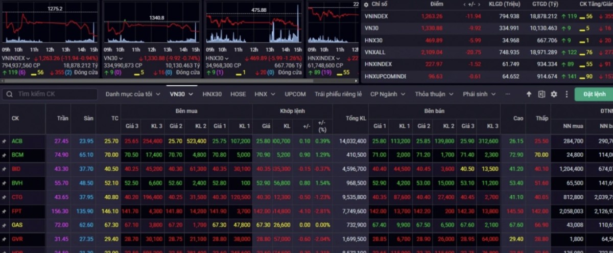 | Kết tuần, VN-Index tăng 0,07% lên mức 1.276 điểm. Ảnh chụp màn hình |
