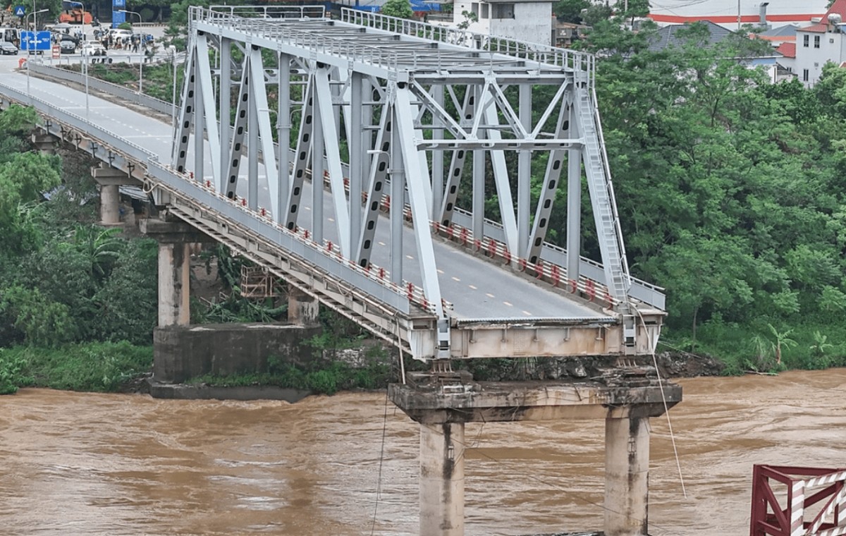 Hiện trường vụ sập cầu Phong Châu (Phú Thọ). Ảnh: VTV |