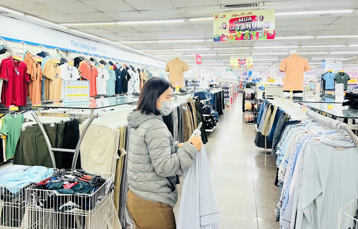 | Khách hàng mua sắm áo quần tại siêu thị Co.opmart Huế. Ảnh: Nguyễn Tuấn |