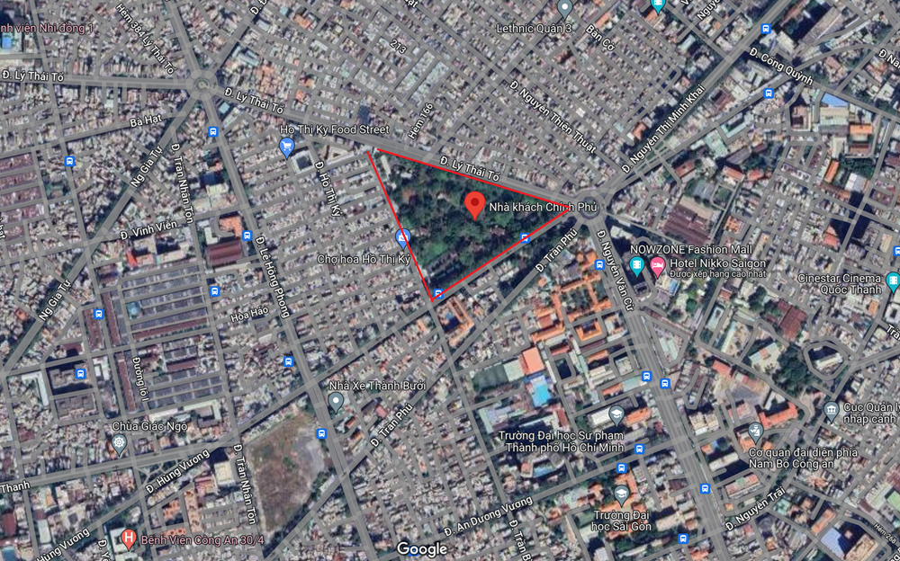 | Nhà khách Chính phủ có địa chỉ số 01 Lý Thái Tổ Phường 1, Quận 10, TP. Hồ Chí Minh đang bị bỏ trống và xuống cấp lãng phí (Ảnh: Google Map) |