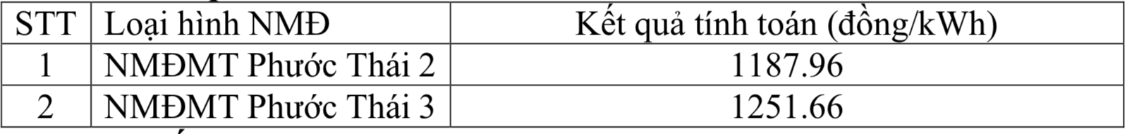 Phương án 4: EVN thực hiện tính toán giá nhà máy điện mặt trời Phước Thái 2, 3 với suất đầu tư được cập nhật giá trị tổng mức đầu tư sau đấu thầu và giá trị chi phí chia sẻ trạm biến áp 220kV của 3 nhà máy điện mặt trời Phước Thái 1, 2, 3.