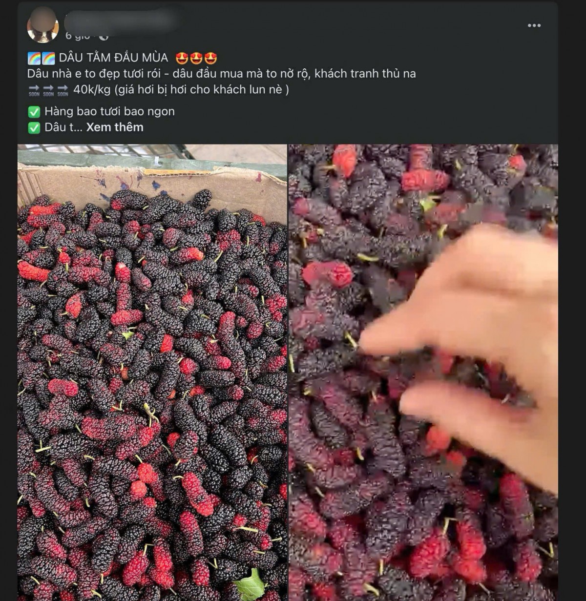 | Dâu tằm được đăng bán trên chợ mạng. Ảnh chụp màn hình |