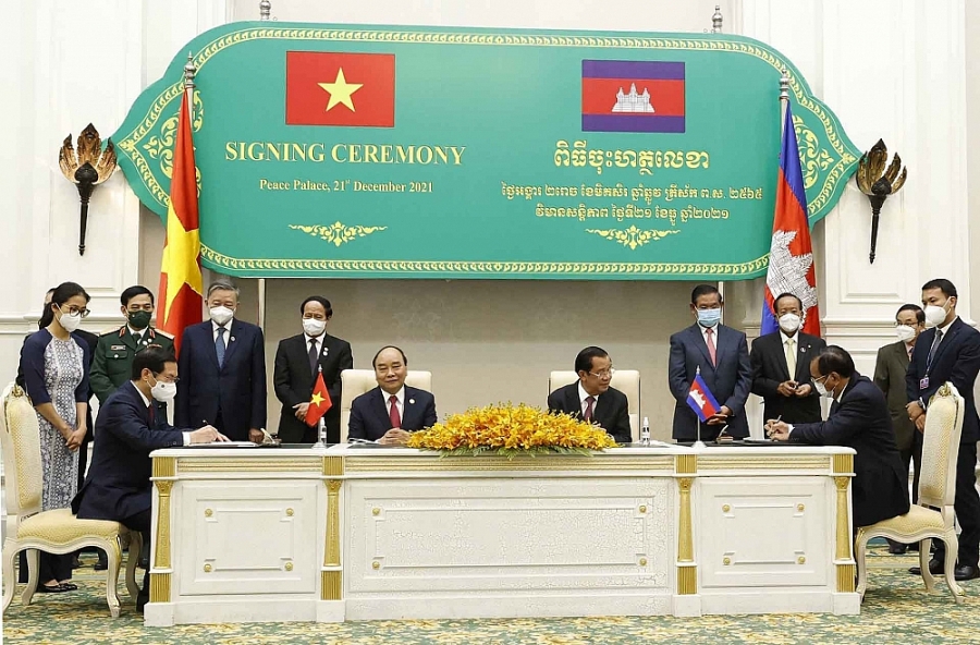 Hai nhà lãnh đạo đánh giá cao các kết quả quan trọng đạt được tại Kỳ họp lần thứ 19 Ủy ban hỗn hợp về hợp tác Kinh tế-Văn hóa-Khoa học và Kỹ thuật Việt Nam-Campuchia do Bộ trưởng Ngoại giao hai nước đồng chủ trì ngày 19/12/2021; giúp rà soát toàn diện và sâu rộng quan hệ hợp tác giữa hai nước trên tất cả các lĩnh vực, đồng thời đưa ra các đề xuất cụ thể để thúc đẩy quan hệ hợp tác song phương.