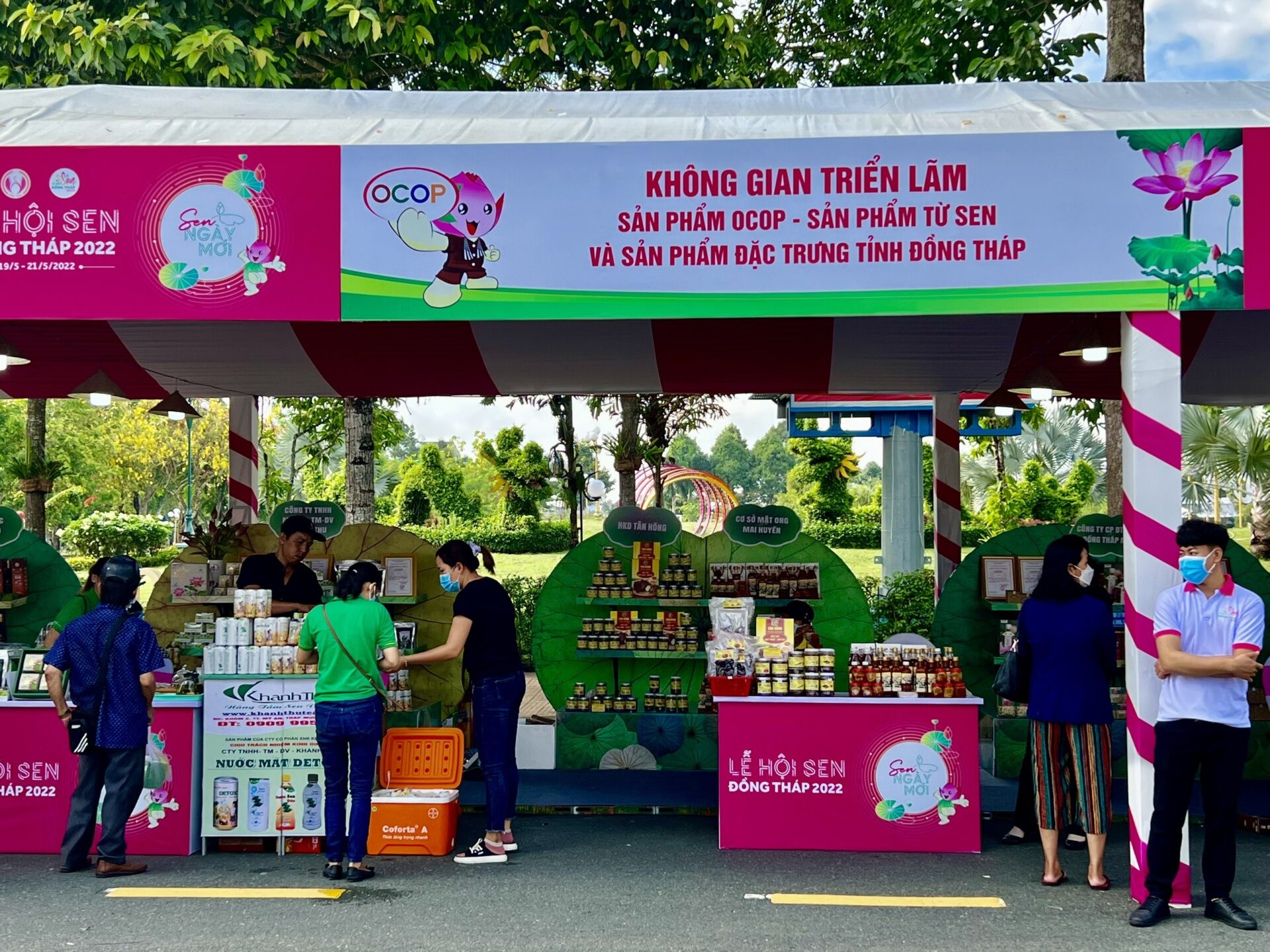 | Triển lãm sản phẩm OCOP - sản phẩm từ sen thu hút đông đảo người tiêu dùng đến tham quan, mua sắm |