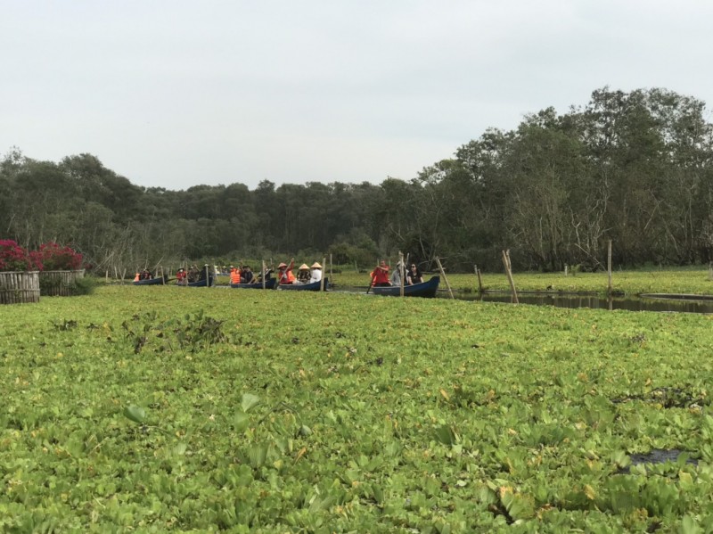 Những chiếc thuyền rẽ sóng nước đưa du khách đi vào sâu trong rừng tràm ngắm nhìn khung cảnh thiên nhiên đẹp mắt vừa lưu lại những bức hình tuyệt đẹp. Du khách sẽ được hòa mình vào thiên nhiên trong lành ngắm những bông điên điển với sắc vàng óng ả, màu xanh của bèo tây được phủ kín bởi khắp bề mặt nước. Du khách cũng sẽ cảm thấy choáng ngợp trước những hàng cây tràm hai bên đường. Không những thế còn được ngắm nhìn những cánh đồng lúa trải rộng thẳng cánh cò bay xen lẫn những hàng cây thốt nốt cao ngút ngàn.