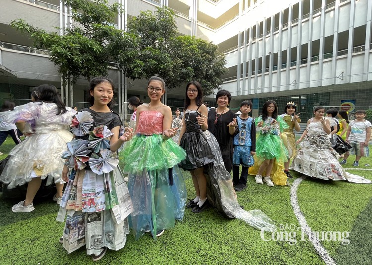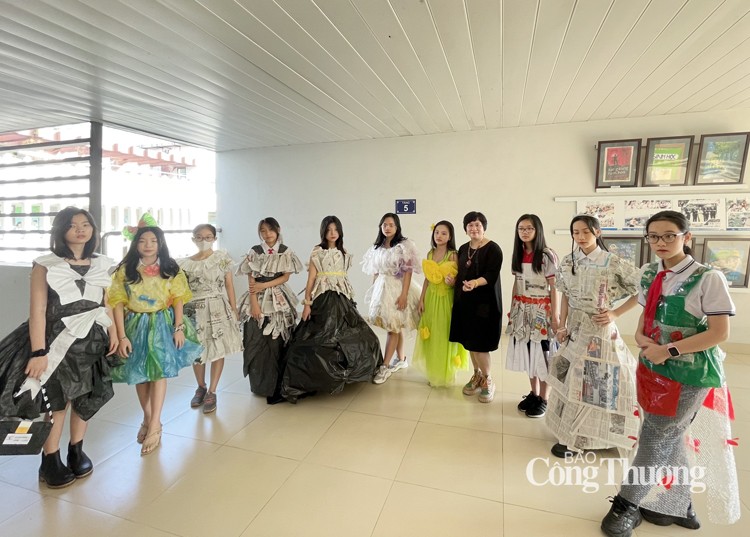 Cô Nguyễn Thị Kim Anh, Giáo viên dạy bộ môn Mỹ thuật chia sẻ: Nhằm tạo sân chơi sau mỗi giờ mệt mỏi, áp lực, là một giáo viên mỹ thuật tôi mong muốn các em có không gian học tập nhóm để gắn tình đoàn kết. Mặt khác để bảo vệ môi trường, tôi đã lên ý tưởng ra đề tài sử dụng các đồ vật tái chế để học sinh thỏa sức sáng tạo ra các bộ trang phục đẹp nhất tại cuộc thi “Duyên dáng thời trang tái chế”. Cùng đó, lan tỏa những việc ý nghĩa để môi trường ngày càng sạch, đẹp hơn.
