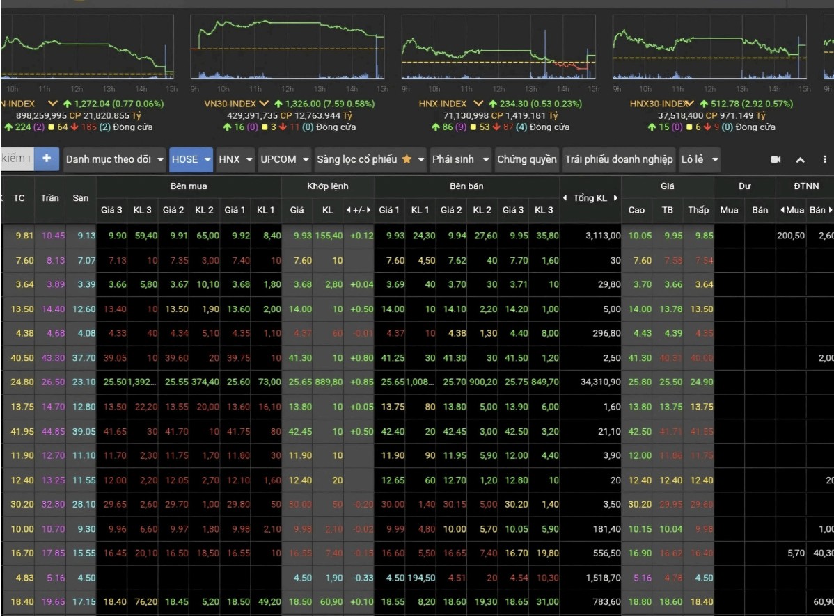 | Thị trường chứng khoán trong nước vừa trải qua tuần giao dịch tương đối thành công khi tăng hơn 20 điểm. Ảnh chụp màn hình |