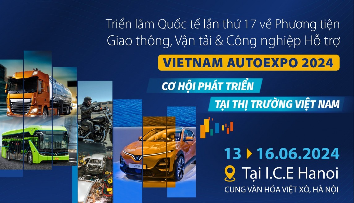 Triển lãm quốc tế lần thứ 17 về Phương tiện Giao thông, vận tải và Công nghiệp hỗ trợ - Vietnam AutoExpo 2024 sẽ chính thức khai mạc từ ngày 13 đến 16/06/2024 tại Trung tâm Triển lãm Quốc tế ICE, Cung Văn hóa Hữu nghị Việt Xô, 91 Trần Hưng Đạo, Hoàn Kiếm, Hà Nội. Chương trình được Cục Công Nghiệp (VIA) - Bộ Công Thương, Hiệp hội Công nghiệp Hỗ trợ Việt Nam (VASI), Hội Kỹ sư Ôtô Việt Nam (VSAE) và Công ty Quảng cáo và Hội chợ Triển lãm C.I.S Vietnam phối hợp tổ chức.