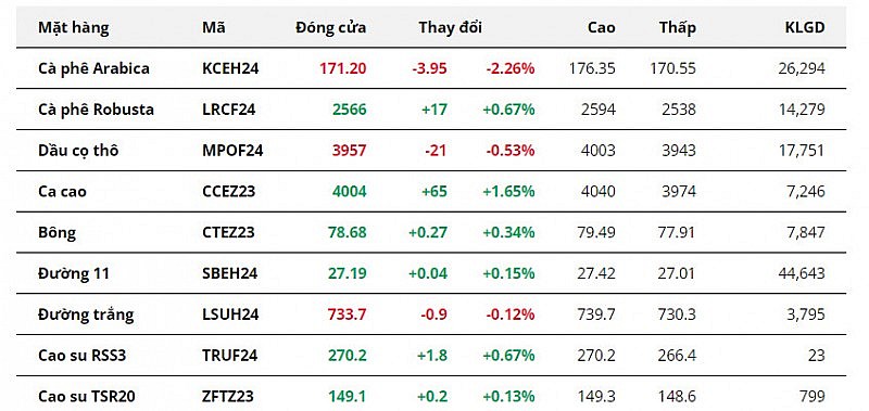 Khép lại phiên giao dịch 16/11, giá hai mặt hàng cà phê diễn biến trái chiều. Cụ thể, giá Robusta tiếp tục tăng trong phiên hôm qua khi cao hơn mức tham chiếu 0,67%, trong khi giá Arabica quay đầu giảm 2,26%. Lượng cà phê chờ phân loại tăng lên trên Sở ICE-US phần nào tạo áp lực lên giá trong khi thị trường xuất hiện thông tin mưa làm chậm quá trình thu hoạch cà phê tại Việt Nam.