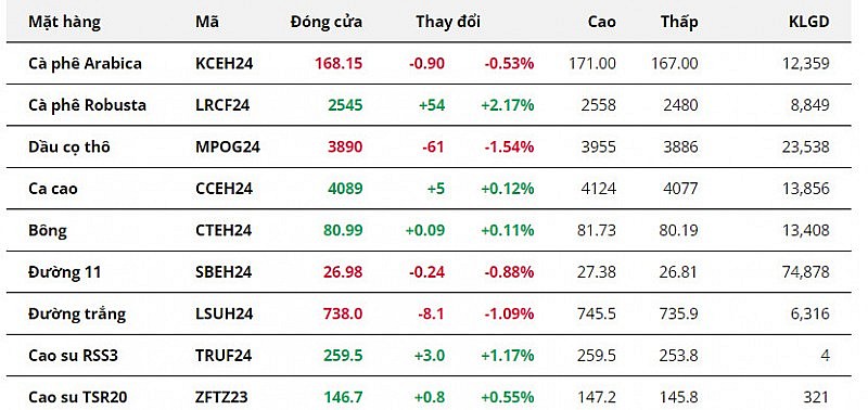 Giá Arabica giảm 0,53% trong khi giá Robusta tăng mạnh 2,17% so với tham chiếu. Triển vọng nguồn cung cà phê tích cực tại Brazil trái ngược với ước tính sản lượng cà phê thấp tại Việt Nam và các quốc gia sản xuất Robusta hàng đầu khác.
