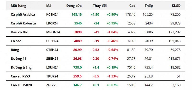 Kết thúc tuần giao dịch 20 – 26/11, bảng giá các mặt hàng nhóm nguyên liệu công nghiệp chứng kiến sự phân hóa giữa sắc xanh và đỏ. Trong đó, giá cà phê tăng lần lượt 0,90% với Arabica và 0,95% với Robusta. Nguồn cung dần có những tín hiệu tích cực nhưng chưa đủ mạnh để lấn át lực mua từ giới đầu cơ.