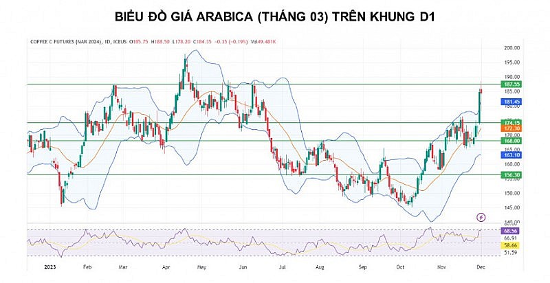 Nhận định: giá Arabica trong phiên hôm nay có thể tăng nhưng vẫn chưa vượt được mức 188 cents/pound.