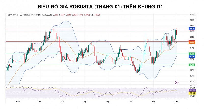 Nhận định: Giá Robusta khả năng cao sẽ có sự biến động trong khoảng 2.565 – 2.620 USD/tấn.