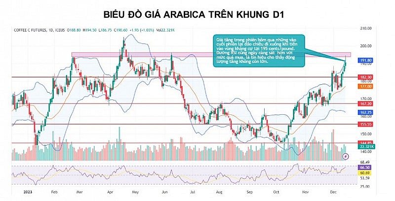 Nhận định: Giá Arabica trong phiên hôm nay có thể biến động trong khoảng 188.50 – 194 cents/pound.