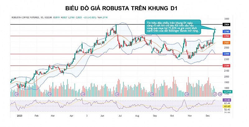 Nhận định: Giá Robusta hôm nay khả năng cao sẽ có những điều chỉnh kỹ thuật, giá có thể tăng trở lại nhưng khó để vượt 2.900 USD/tấn.