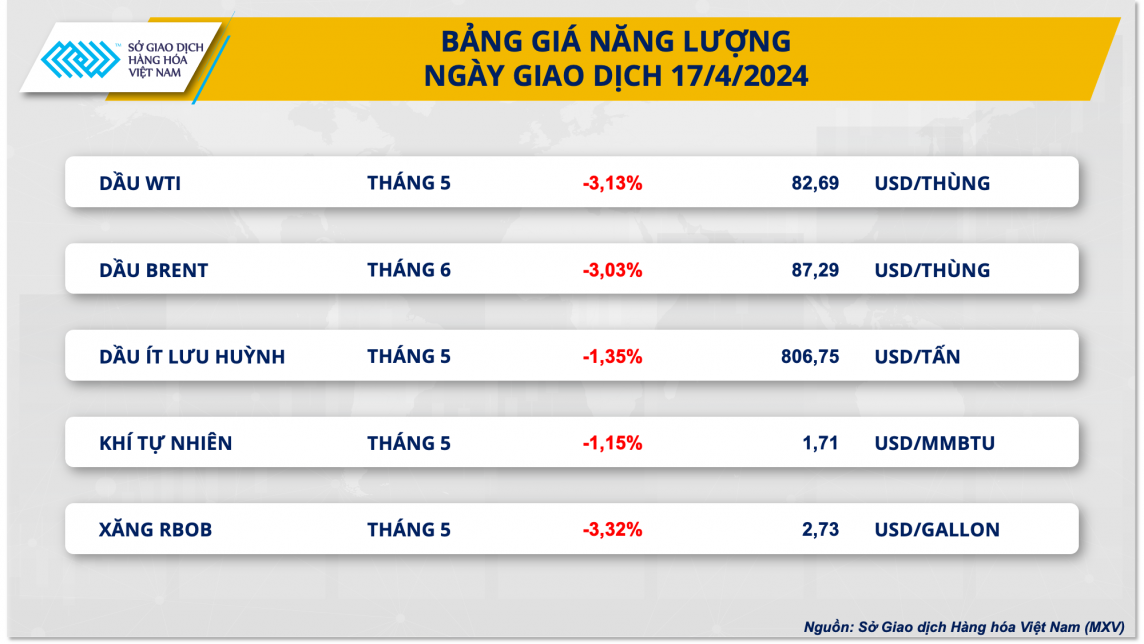 Sức ép vĩ mô và nỗi lo về triển vọng nhu cầu tạm thời lấn át rủi ro nguồn cung, đã thúc đẩy lực bán trên thị trường. Chốt phiên, giá dầu WTI giảm 3,13% xuống 82,69 USD/thùng. Dầu Brent giảm 3,03% xuống 87,29 USD/thùng, mức thấp nhất trong 3 tuần qua.