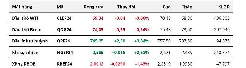 Cụ thể, dầu WTI giảm 0,06% xuống 69,34 USD/thùng. Dầu Brent chốt phiên về mức 74,05 USD/thùng, giảm 0,34% so với phiên trước đó. Như vậy, giá dầu đã có chuỗi giảm 6 ngày liên tiếp.