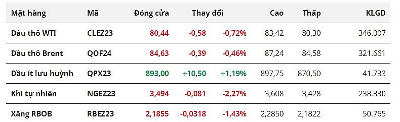 Giá dầu WTI chốt phiên ngày 1/11 giảm 0,7% xuống 80,44 USD/thùng, mức thấp nhất kể từ ngày 28/8. Giá dầu Brent giảm 0,5% xuống 84,63 USD/thùng, mức thấp nhất kể từ ngày 6/10.