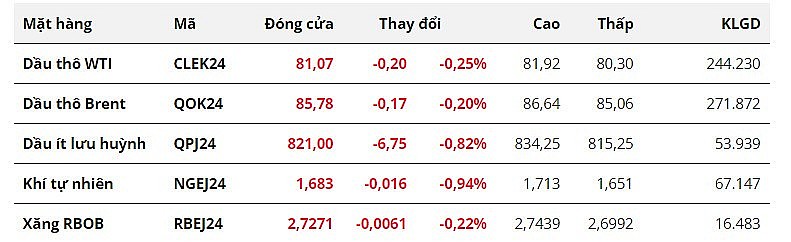 Cụ thể, giá dầu WTI giảm 0,25% xuống 81,07 USD/thùng. Dầu Brent giảm 0,20% xuống 85,78 USD/thùng.