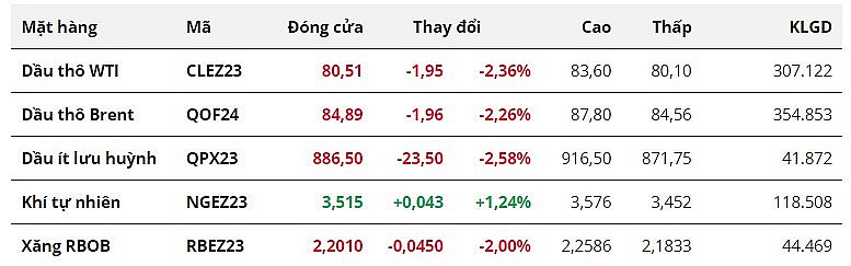 Cụ thể, giá dầu WTI gần như xóa sạch đà tăng của phiên trước khi giảm 2,36% xuống 80,51 USD/thùng. Giá dầu Brent giảm 2,26% xuống 84,89 USD/thùng.