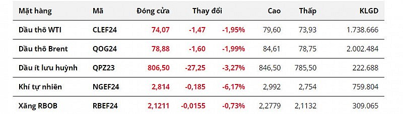 Cụ thể, dầu WTI kỳ hạn tháng 1 năm sau rơi khỏi mốc 75 USD/thùng, khi giảm 1,95% xuống còn 74,07 USD/thùng. Dầu Brent kỳ hạn tháng 2 mất mốc 80 USD/thùng, giảm gần 2% xuống 78,88 USD/thùng.