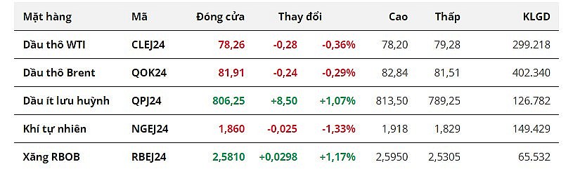 Mặc dù những lo ngại về nguồn cung vẫn còn tồn tại, nhưng các cuộc khảo sát phản ánh sự lạc quan của thị trường đối với sản lượng thực tế tại các nước lớn, đã gây sức ép cho giá dầu. Giá dầu WTI đã giảm 0,36% xuống 78,26 USD/thùng. Dầu Brent giảm 0,29% xuống 81,91 USD/thùng.