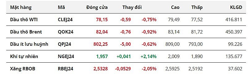Kết thúc ngày giao dịch 5/3, giá dầu tiếp tục giảm phiên thứ hai liên tiếp trong bối cảnh nhà giao dịch giữ tâm lý thận trọng về tín hiệu kinh tế tại các nước tiêu thụ dầu lớn nhất thế giới. Sự hoài nghi về tăng trưởng làm mờ triển vọng nhu cầu, từ đó gây áp lực cho giá dầu. Chốt phiên, giá dầu WTI giảm 0,75% xuống 78,15 USD/thùng. Dầu Brent giảm 0,92% xuống 82,04 USD/thùng.