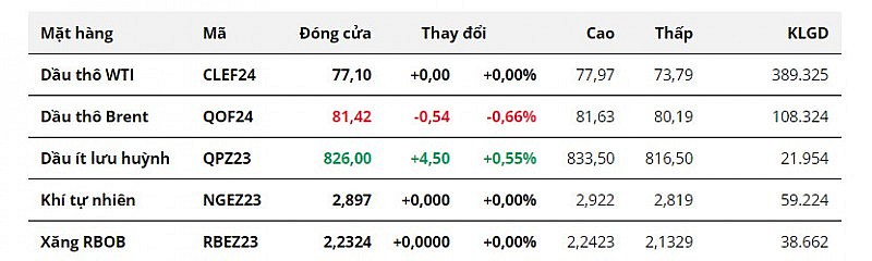 Giá dầu WTI giảm 1% xuống 76,35 USD/thùng tính đến thời điểm cuối phiên 2h30. Giá dầu thô Brent kỳ hạn giảm 0,68 USD, tương đương khoảng 0,8%, đạt mức 81,28 USD/thùng. Giá đóng cửa tại các sàn giao dịch quốc tế sẽ được tổng hợp trong ngày giao dịch 25/11 do nghỉ Lễ.
