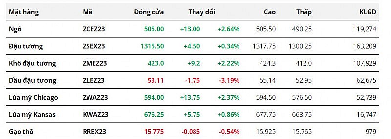 Giá hai mặt hàng thành phẩm của đậu tương diễn biến mạnh và trái chiều nhau trong phiên hôm qua. Trong khi giá khô đậu tương tăng tới 2,22% và ghi nhận phiên khởi sắc thứ 4 liên tục, thì giá dầu đậu tương lao dốc 3,19% và ghi nhận chuỗi 3 phiên giảm liên tiếp. Nhu cầu tăng cao là yếu tố “bullish” chính đối với giá khô đậu, khi USDA cho biết trong báo cáo Export Sales tối qua rằng Mỹ bán được 434.675 tấn khô đậu tương niên vụ 23/24 trong tuần 06/10-12/10, tăng 622% so với một tuần trước đó. Ngược lại, giá dầu đậu tiếp tục chịu sức ép từ lực bán chốt lời cũng như sự suy yếu của giá dầu cọ.