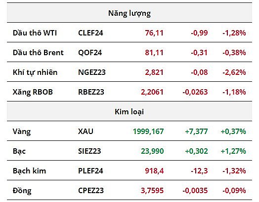 Giá dầu WTI (CLEF24 -1,28%) giảm mạnh hơn trong phiên giao dịch tối 24/11. Theo một số nguồn tin quen thuộc với vấn đề, OPEC+ đã tiến gần hơn đến một thỏa hiệp với các nhà sản xuất dầu tại châu Phi về mức sản lượng năm 2024, sau những bất đồng về mục tiêu bắt buộc nhóm phải tạm hoãn cuộc họp quan trọng.